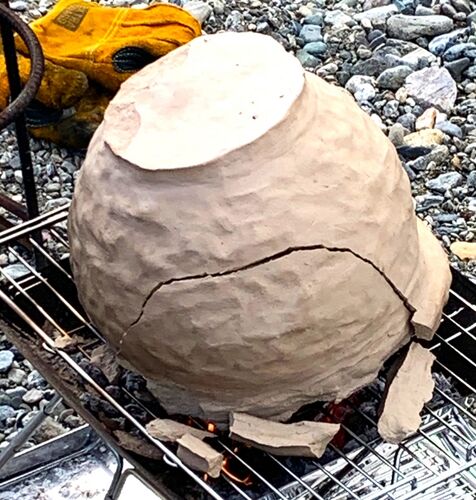 やってきました。晴天の河原に。 焚き火で大物焼いて、肉焼いて。。。w 早速、本命が無残に割れてしまいましたが。。。 気を取り直して、小さい作品でリベンジです。 赤土の作品は、いい色でてますね。少し、ひび割れしたのが残念です。 一緒に持ってきた七…