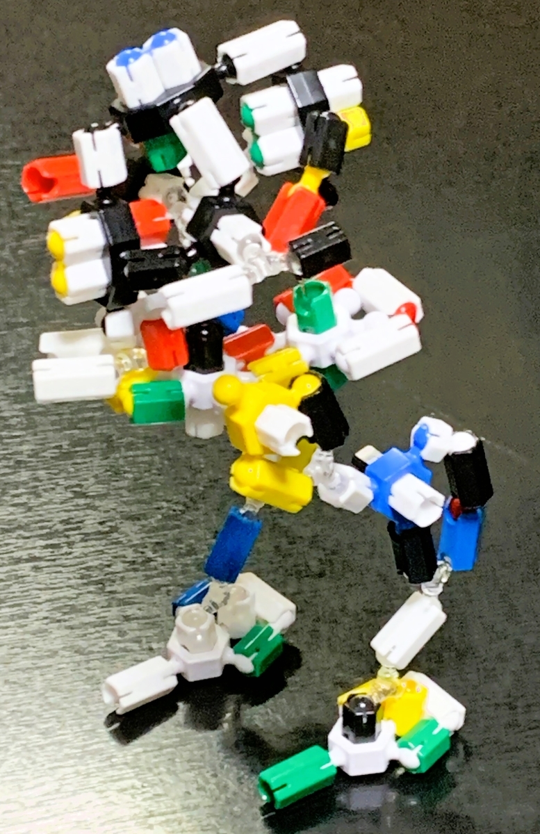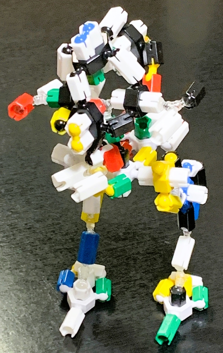 ASOBLOCKの3つ股パーツ2種類を使うことで脚部が上手く造ることができました。
